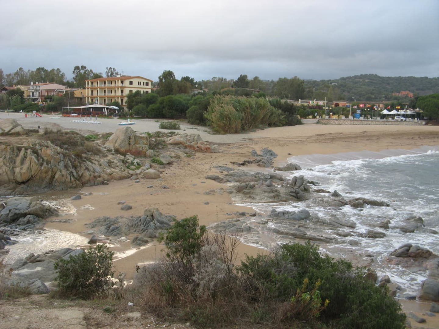 Hotel La Torre in Bari Sardo, Sardinien: Blick von dem alten Turm am Strand, am rechten Bildrand ist das Hotel zu sehen