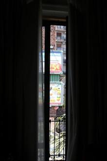 Blick aus dem Zimmer auf den Balkon
