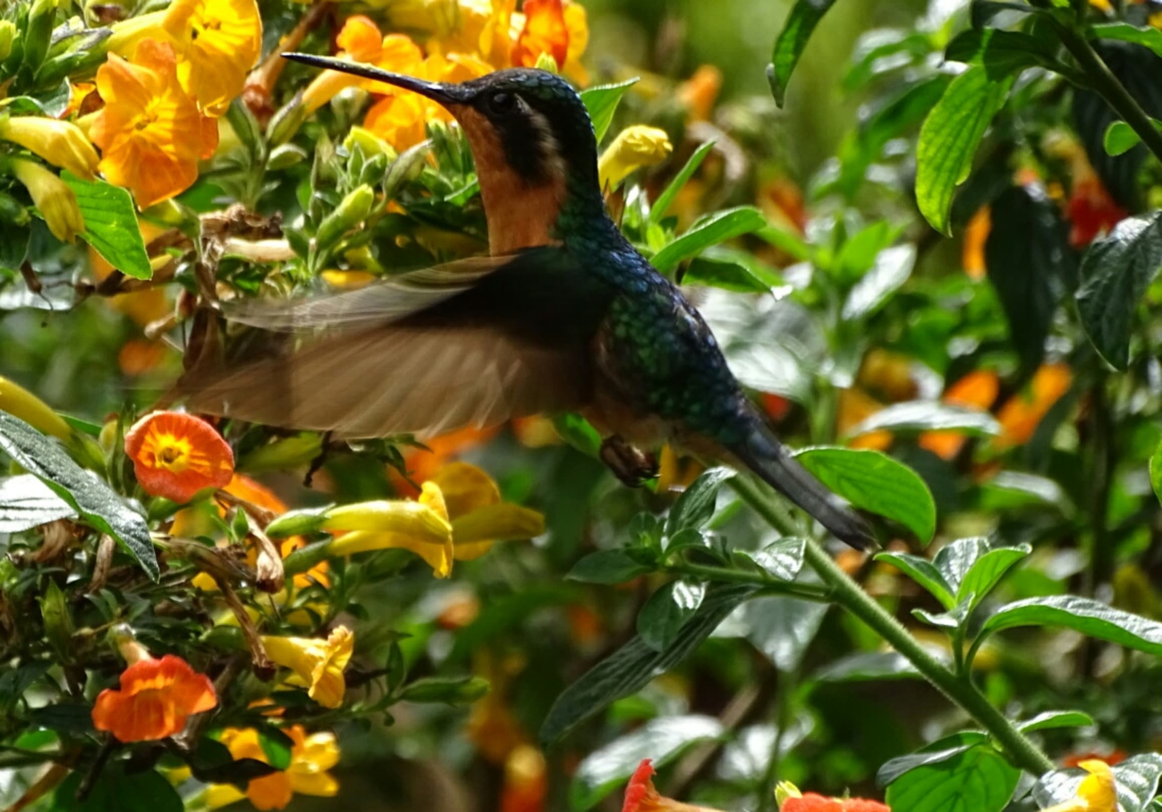 In den Blumen der Außenanlage vor dem Hotel tummeln sich die Kolibris.