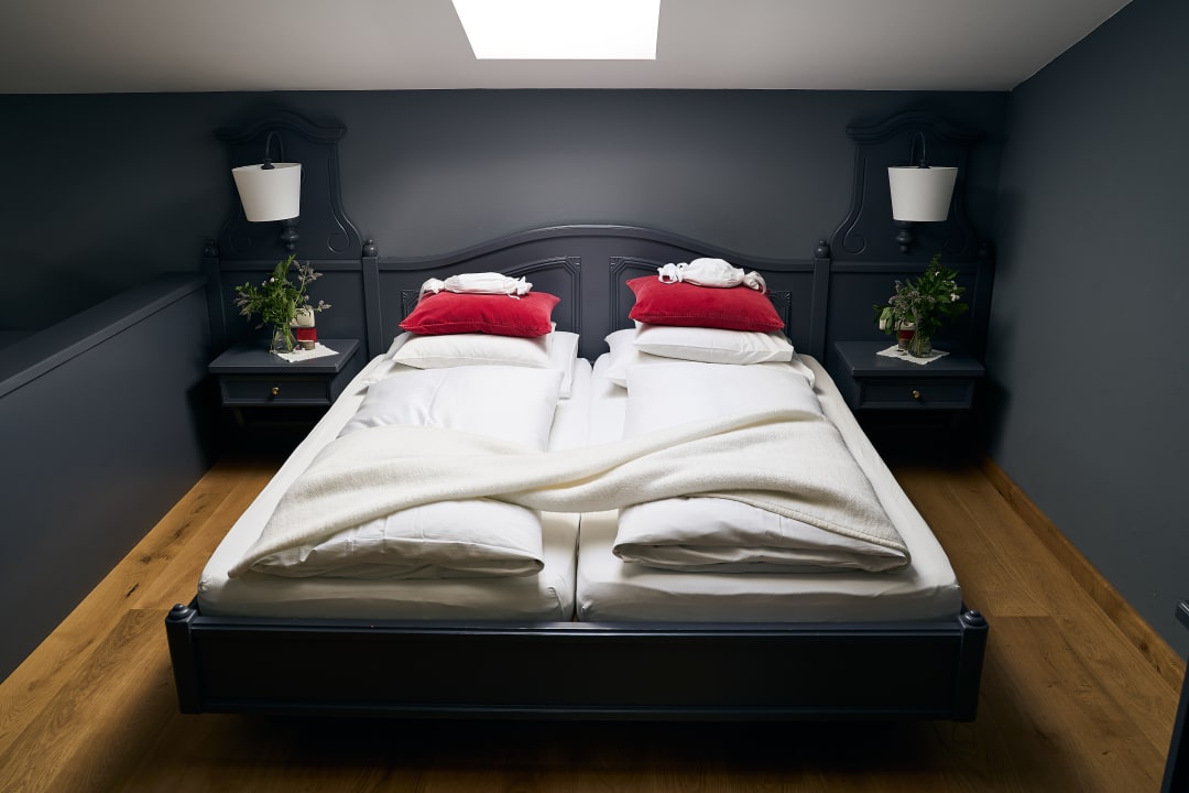 Juniorsuite Harmonie mit Dachfenster zum Sternderlschauen über dem Bett.
