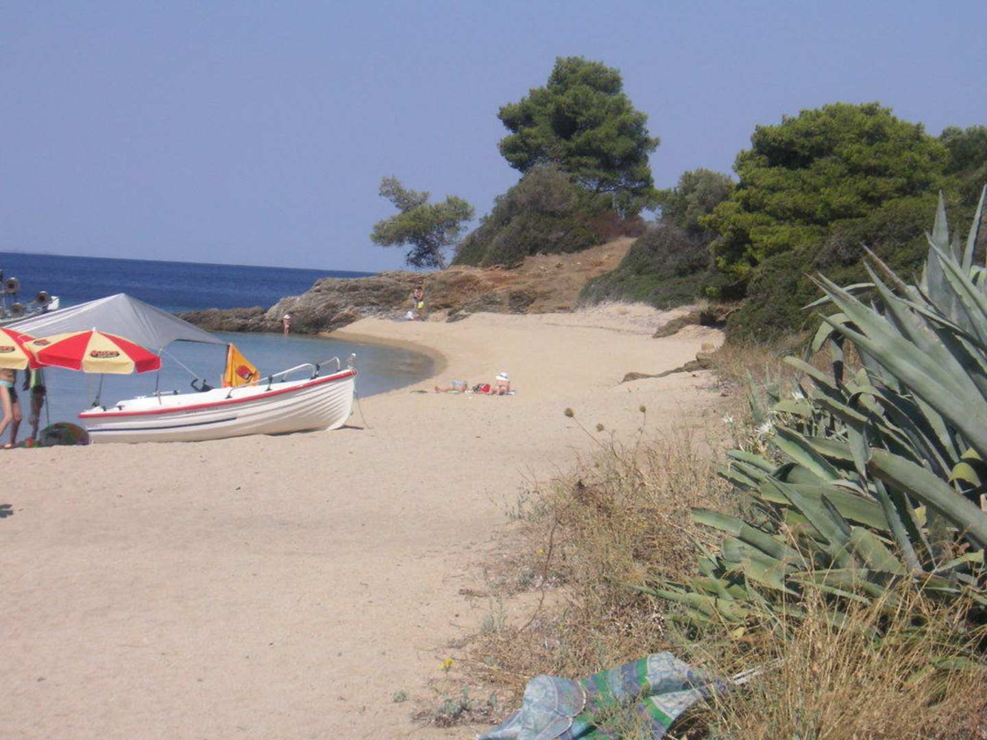 Mit in den Sand zu steckenden Sonnenschirmen (am Kiosk für 10€) kann man sich hier relativ gut abgeschottet auch freizügiger sonnen.
