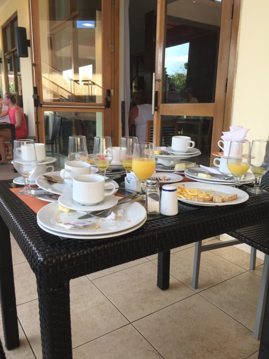 Gastrounabgeräumte Tische schon kurz nach Frühstücksbeginn