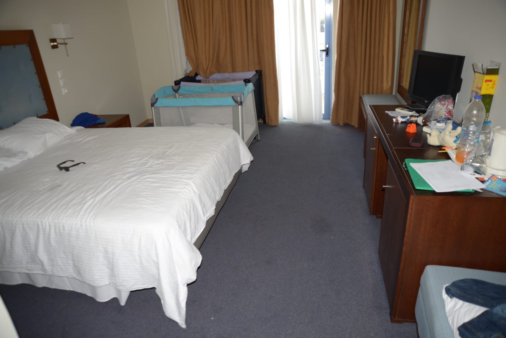 ZimmerHinteres Zimmer Familiensuite mit Blick auf den Balkon (Fleck auf dem Boden war frisch, vermutlich Wasserfleck durch unsere Kinder)