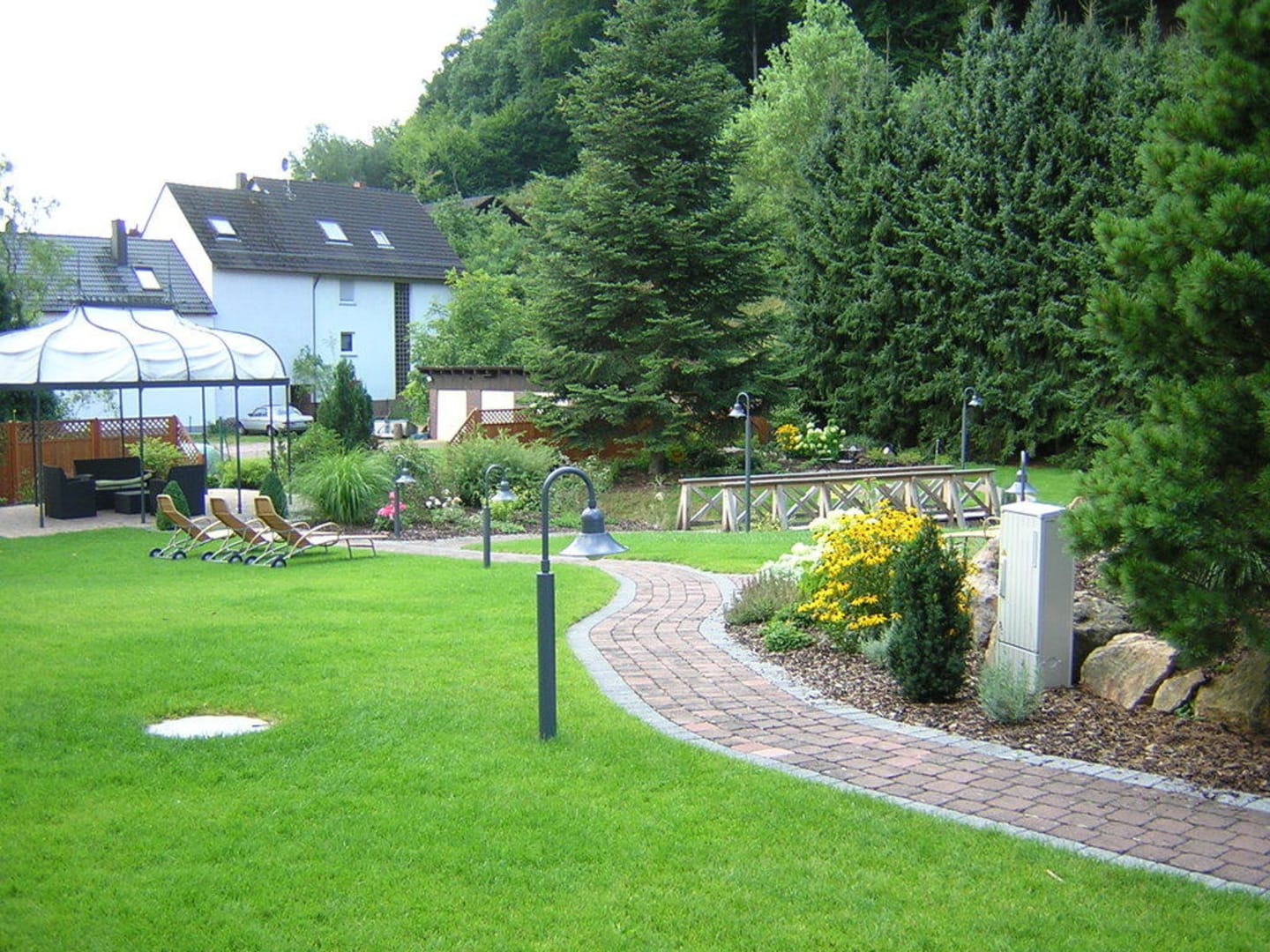 Schön angelegte Gartenanlage