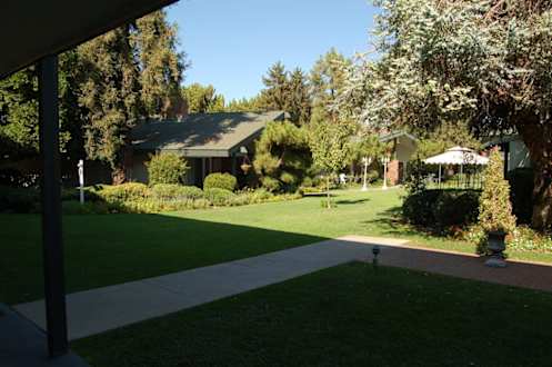 Blick in den Garten vom Hotel.