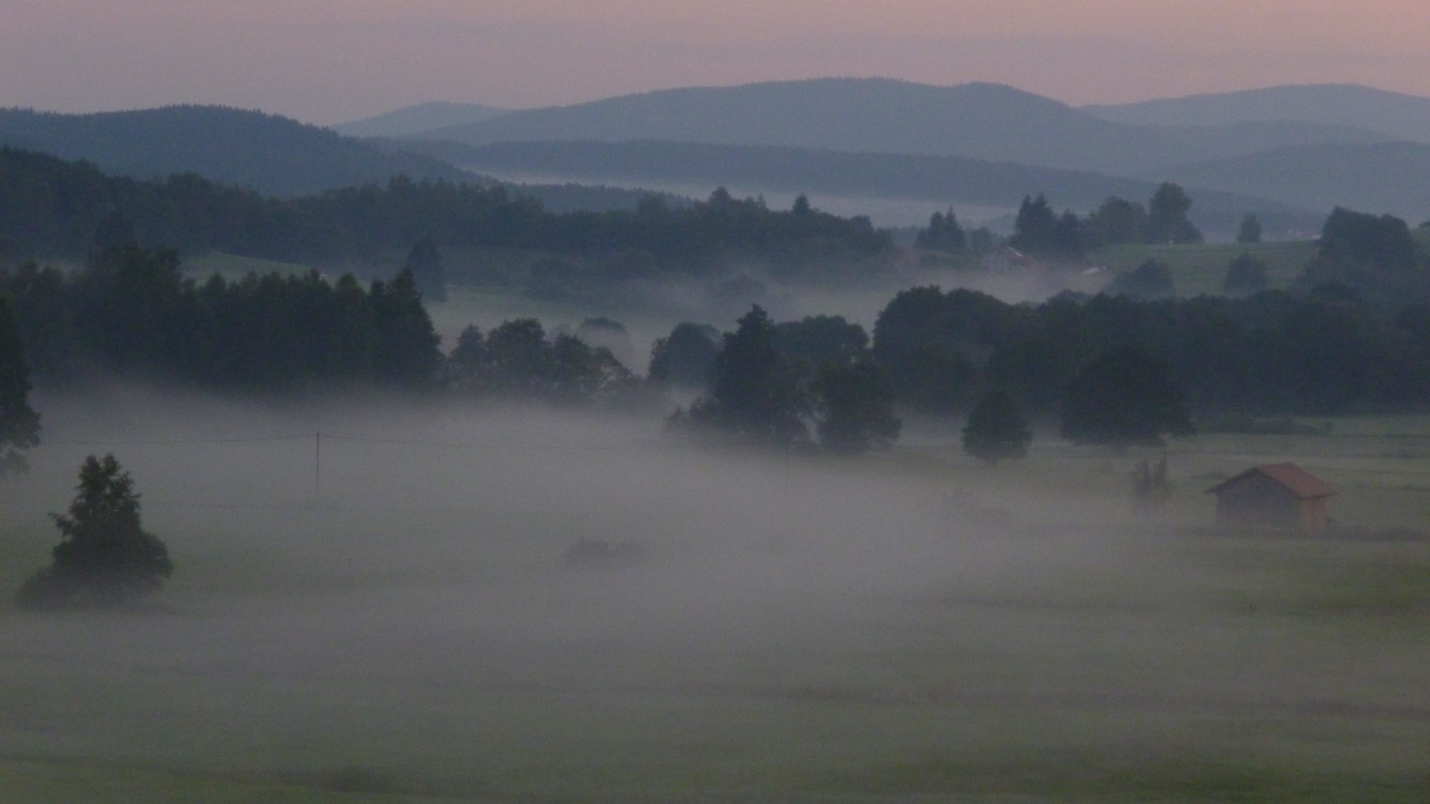 Bick vom Balkon mit Morgennebel