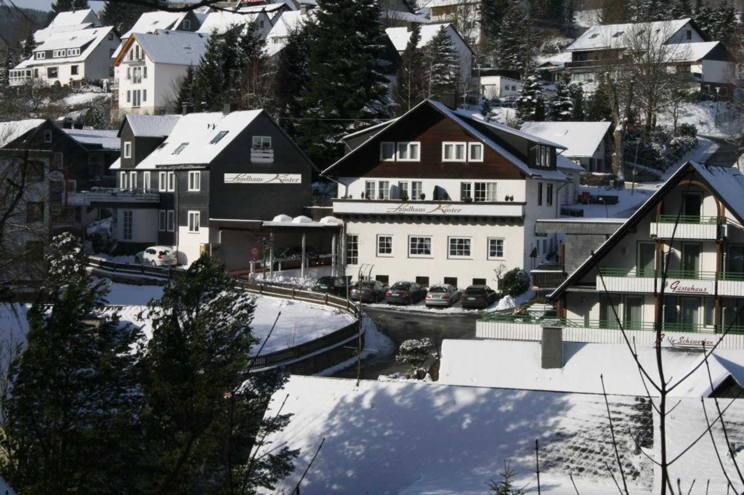 Winter 2009 - Landhaus Köster in WillingenHochsauerland, Willingen (Upland), Landhaus Köster, Bergstr. 4 - 4a, Blick vom Iberg auf das Landhaus Köster