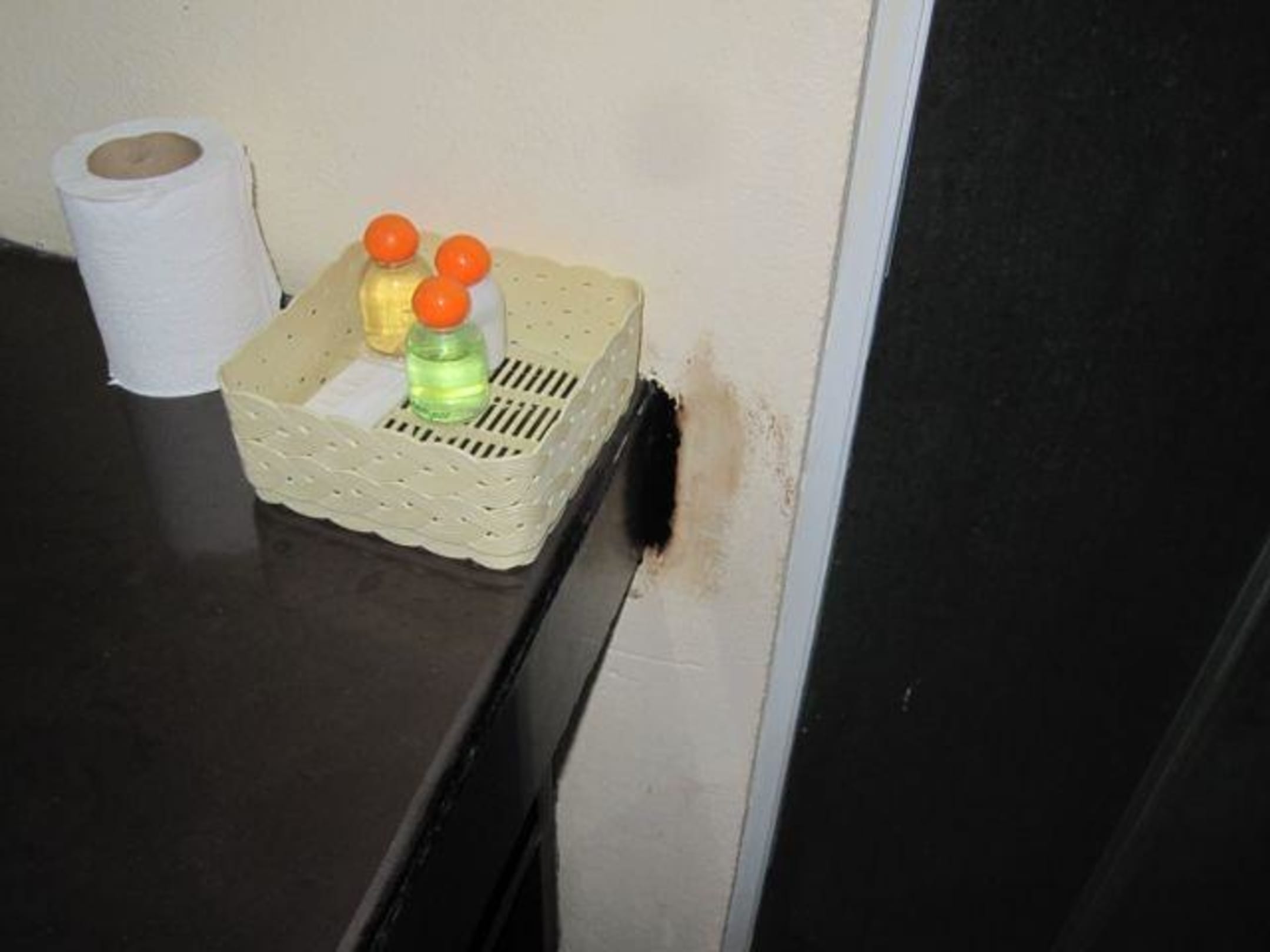 Korb mit zwei alten Shamppos und einer Lotion
