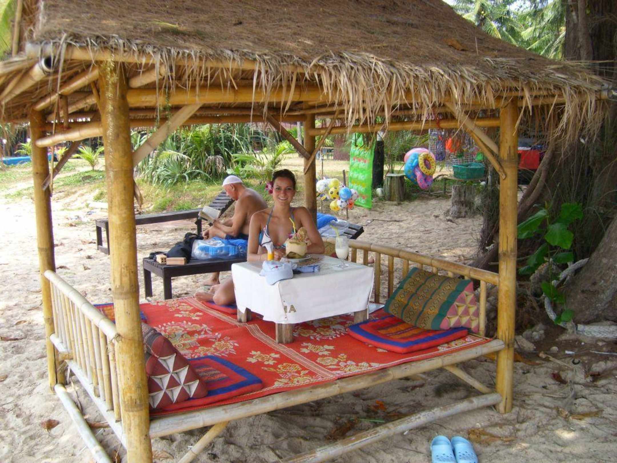 Strandhütte mit Blick auf Meer