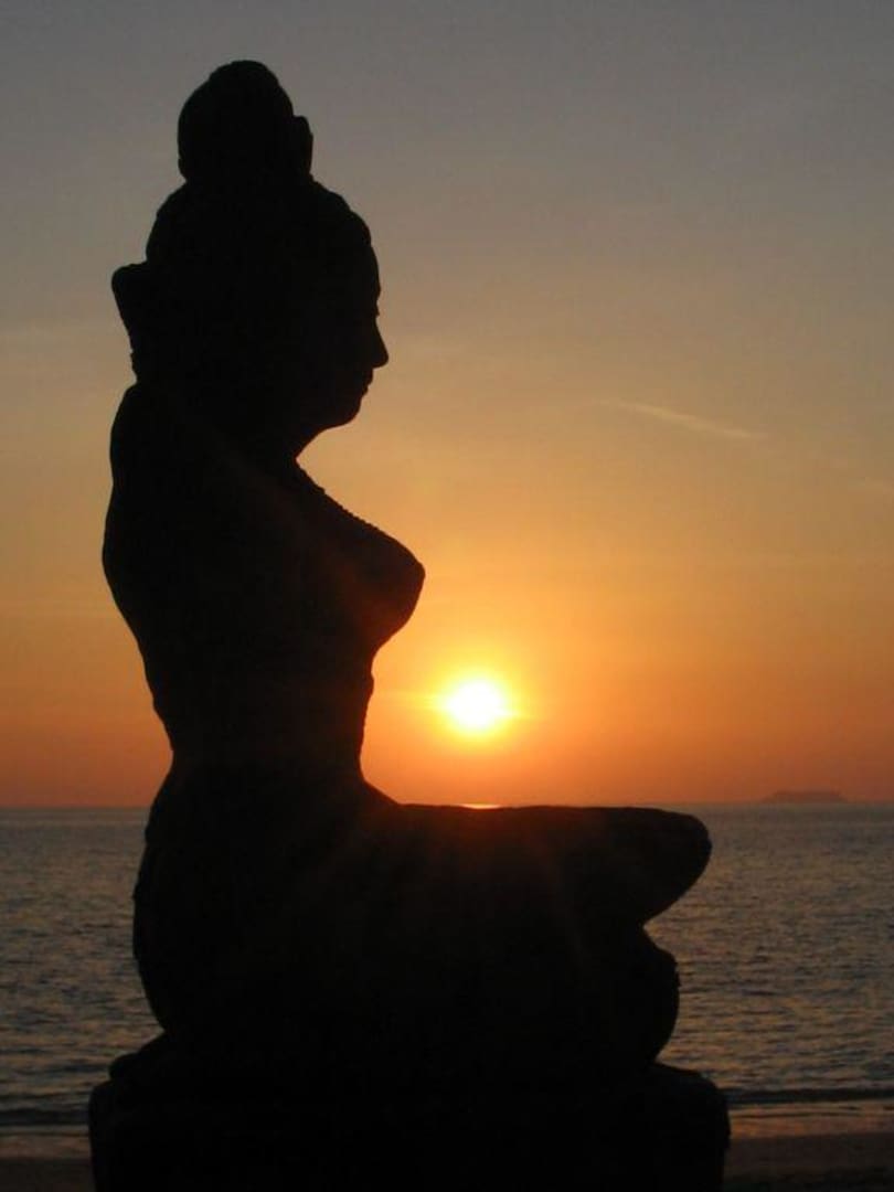 Die Göttin verwahrt die Sonne über NachtKoh Lanta , Long Beach , Lanta Sand Resort & Spa , Eingang von der Strandseite