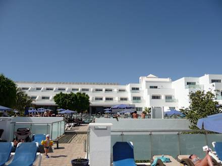 Blick vom Pool zum Hotel