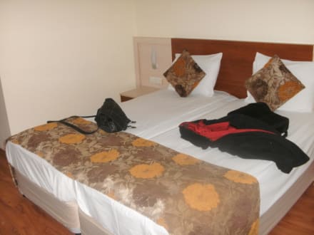 Blick auf den SchlafbereichDas Zimmer war sehr schön eingerichtet. Das Bettzeug war sauber und im Bett waren sehr gute Matratzen.