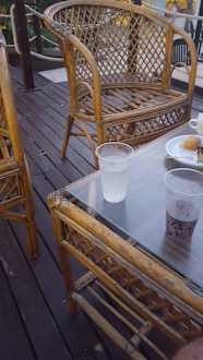 Sitzmöglichkeiten auf der Terrasse neben dem Pool