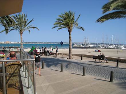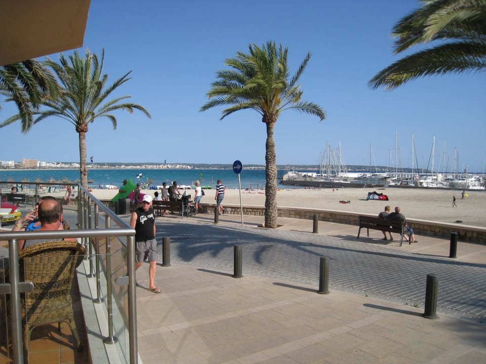 Promenade und Strand vom Hotel aus gesehen.