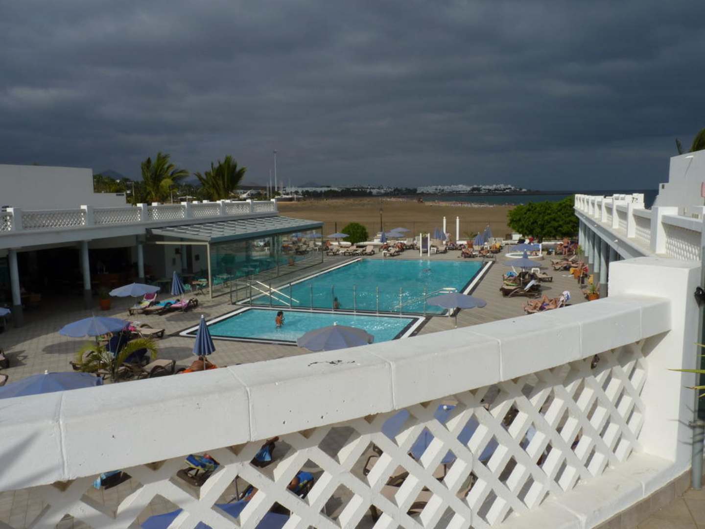 Poolbereich von der Lobby kommend