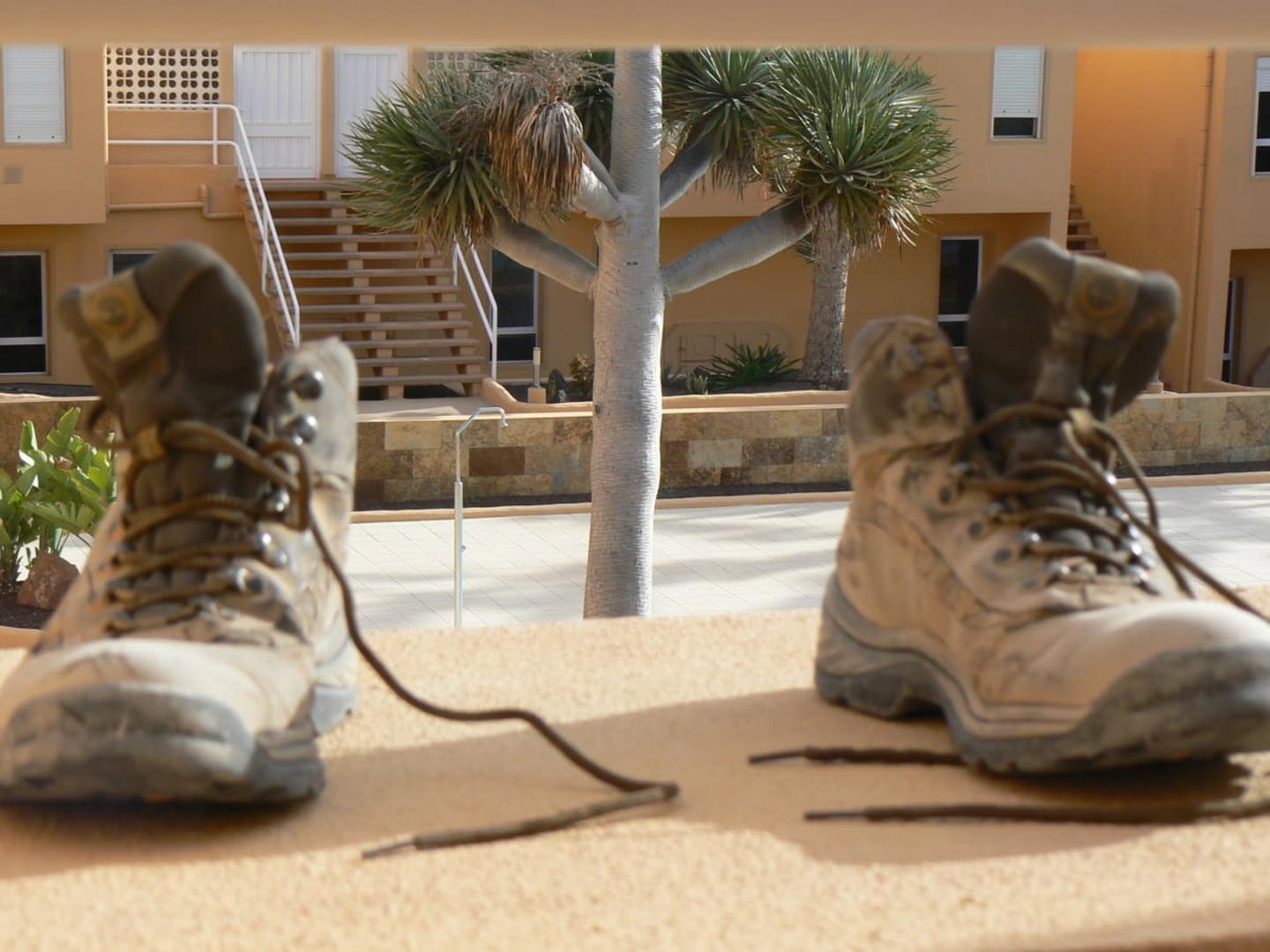 Schuhe aus auf dem Balkon