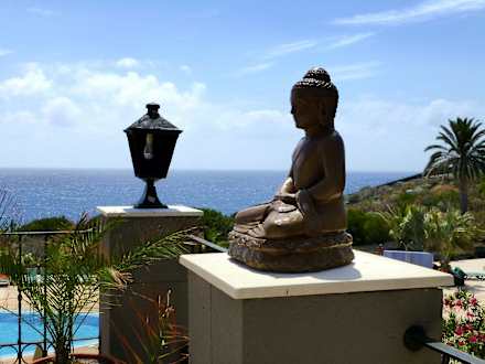 Buddah im Thai Restaurant & Blick auf den Pool