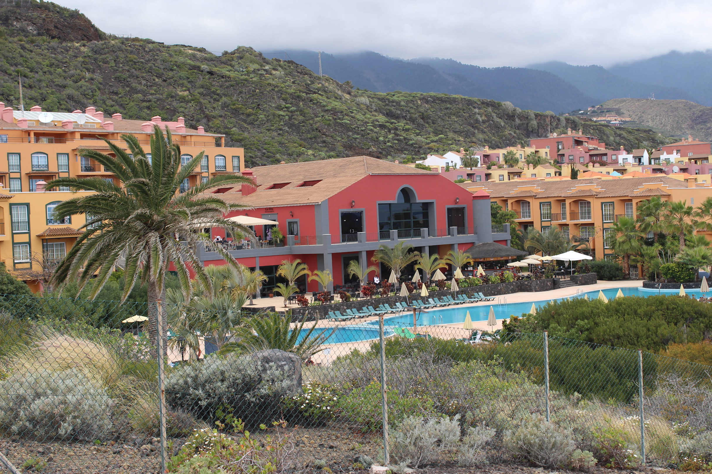 Blick auf Pool und Restaurant