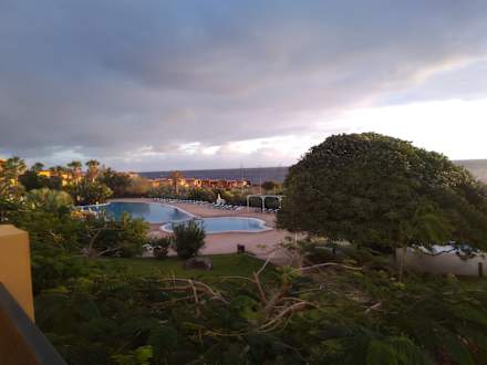 Blick auf den Pool vom Zimmer