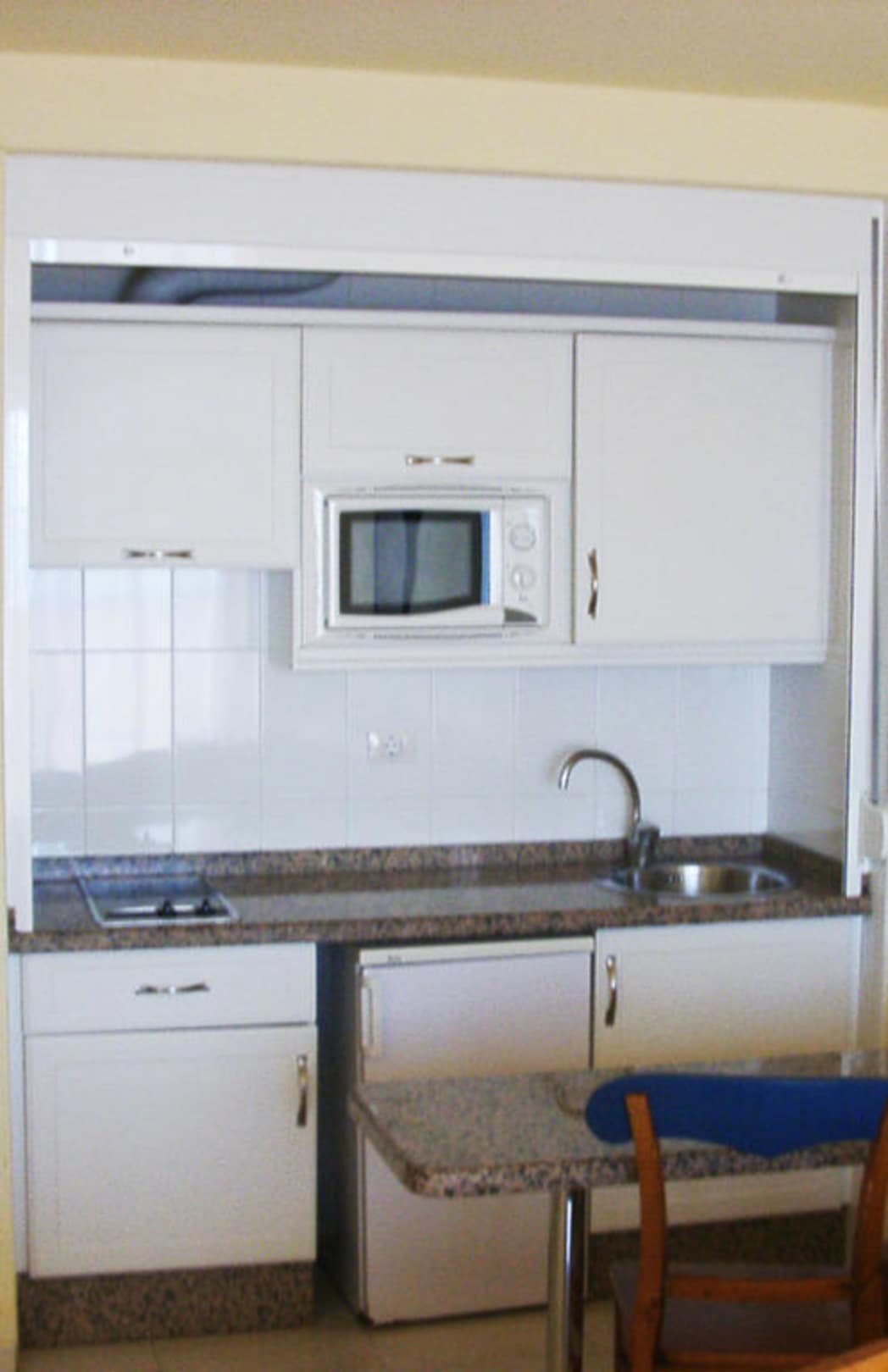Kleine KücheKlein, aber völlig ausreichend für den täglichen Eigenbedarf. Nur einen Teekocher hätte es noch geben können ...