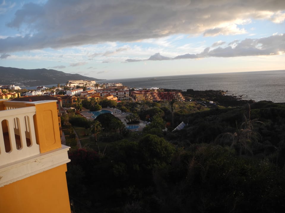 Ausblick vom Appartement 238 über die Poollandschaft Richtung Santa Cruz de La Palma