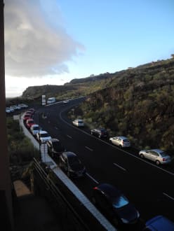 Die Straße führt unmittelbar hinter dem Hotel Las Olas vorbei Richtung Flughafen