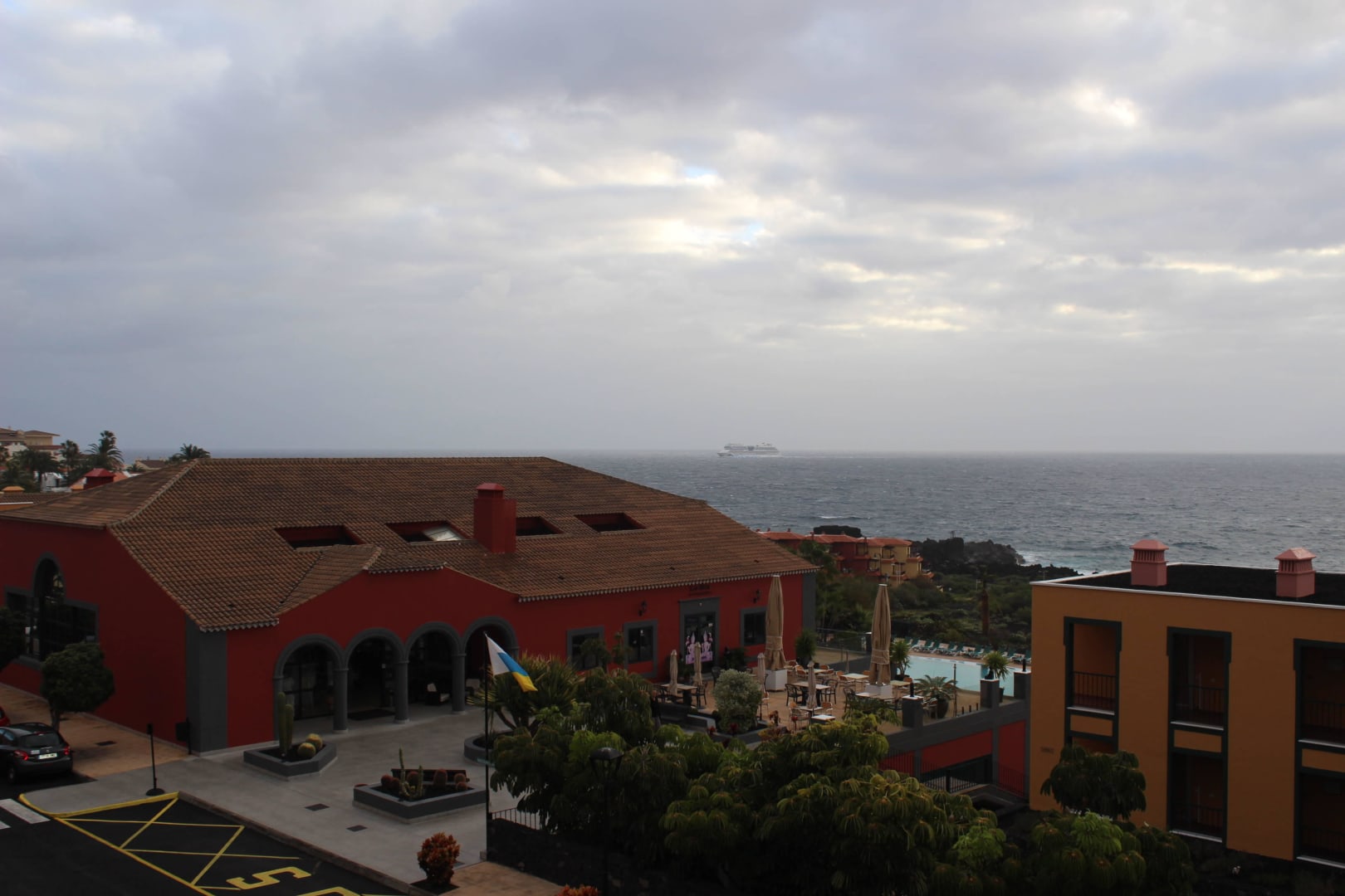 Blick vom Balkon auf die Rezeption