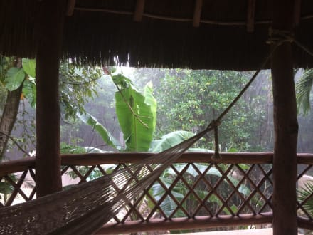 Balkon mit Hängematte bei Regen