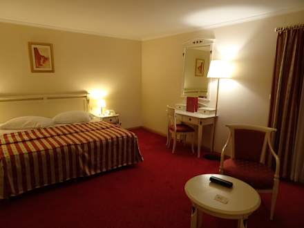 Zimmer mit Doppelbett, Schreibtisch, Sessel