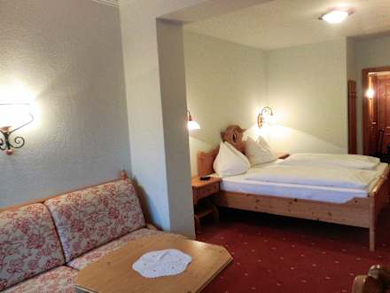 Blick vom kleinen Wohnzimmer in den Schlafbereich