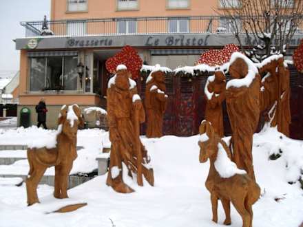 Grippe vor dem HotelZur Winterzeit wird der Brunnen vor dem Hotel abgedeckt und zur Weihnachtszeit mit einer schönen Grippe dekoriert