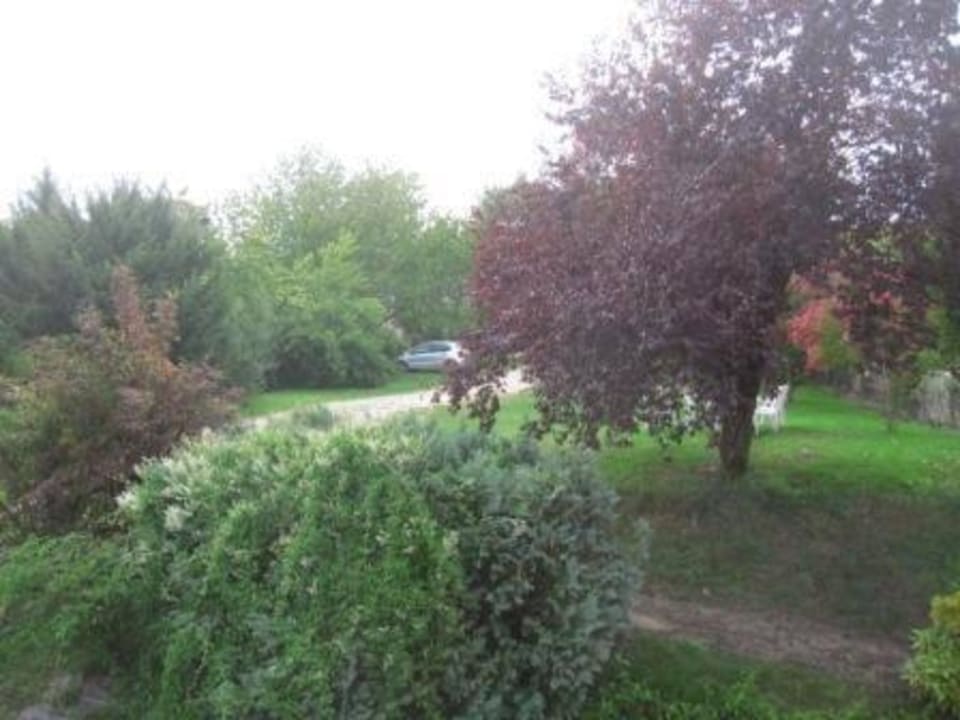 Gartenseite (Zi. Nr. 5) mit Parkplatz