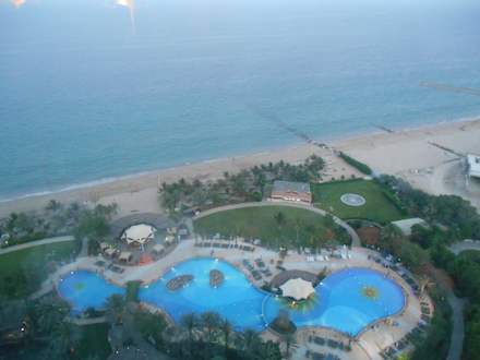 Vom obersten Stockwerk Hotel Le Meridien Al Aqah Beach Resort