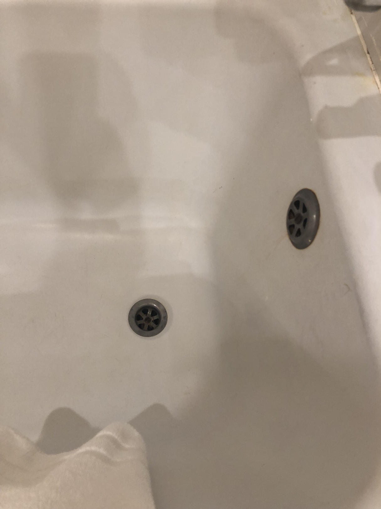 Badewanne mit fehlendem Stöpsel.
