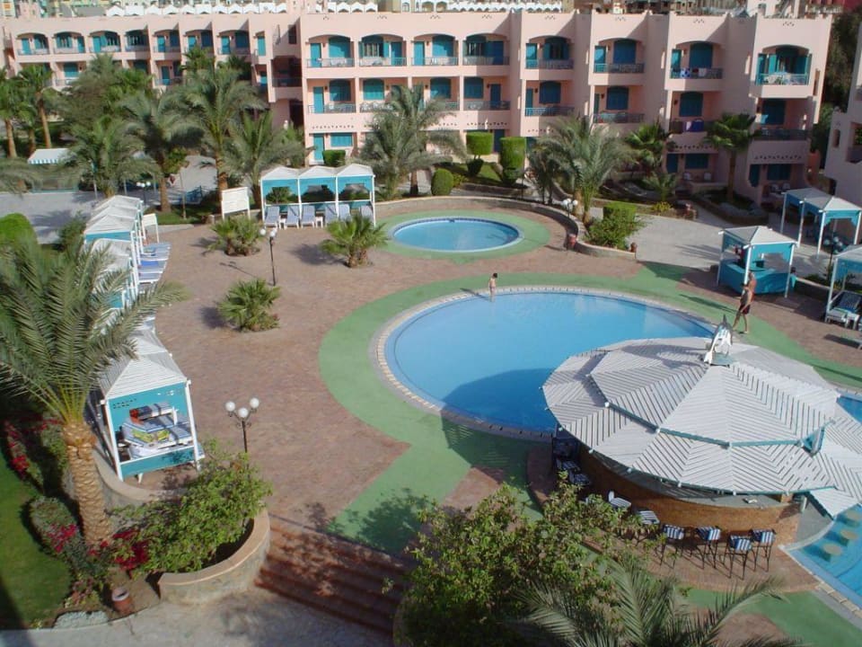 Vom Dach die Poolbar und der zentrale Pool