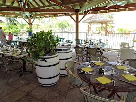 Blick auf die Tische der Poolbar "Comptoir du Sud"