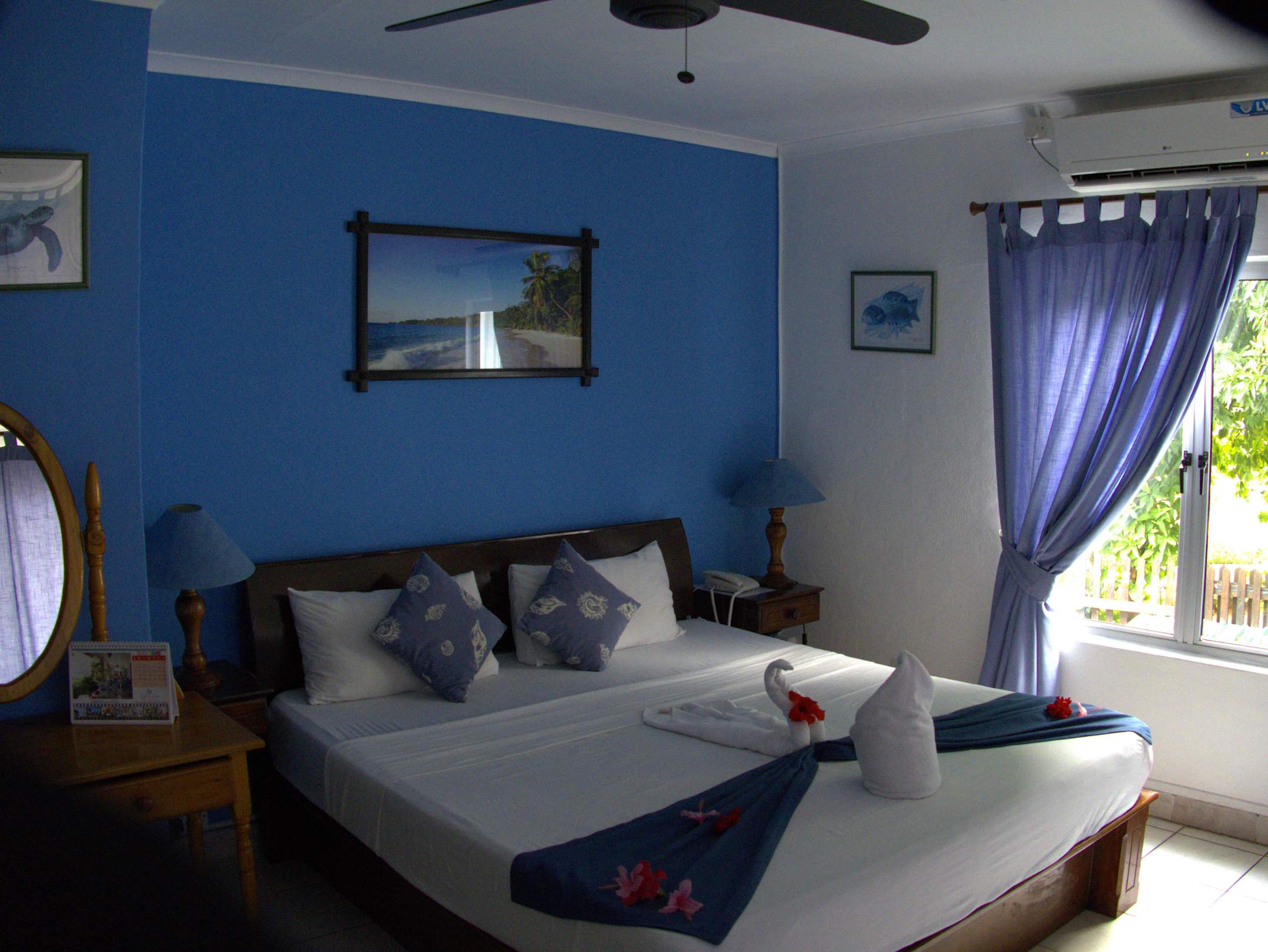 Mahe', an der Anse Royal. Hotel auf höheren Hang ,Zimmerreinigung gut. Klimaanlage und Ventilator funktionierten. Akku oder Handy aufladen brauchte man Adapter.