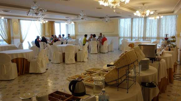 Am Frühstücksbüffet ( kleiner Speisesaal )