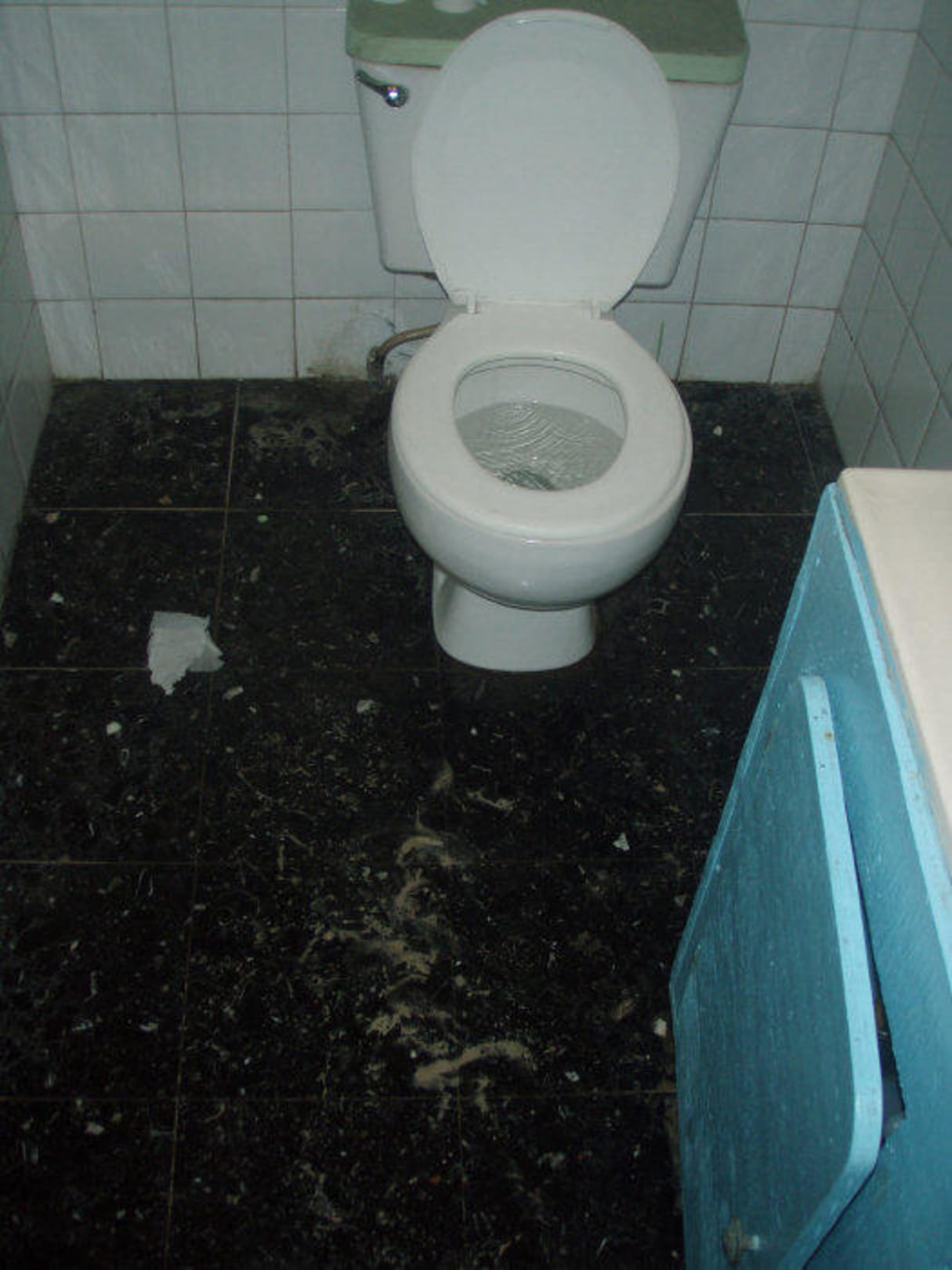 Verdreckte, baufällige ToilettenStrand-, Restaurant-, und Hotelbesucher sowie das Personal benutzte dieses WC. Es hatte kein Fenster, war stark verschmutzt und stank. Das zweite nebenan sah genauso aus. Hier sollten wir uns und unsere Kinder am Abreisetag umziehen.