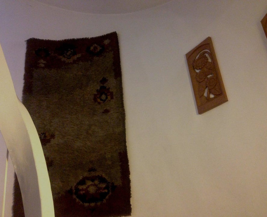 TreppenhausDas Treppenhaus stinkt - wie auch der Rest des Hauses - nach kaltem Qualm, Küchenmief und anderen undefinierbaren Gerüchen. Der "Wandschmuck" in Form von u.a. Wandteppichen ist vollkommen verstaubt und verdreckt und einfach lieb- und geschmacklos.