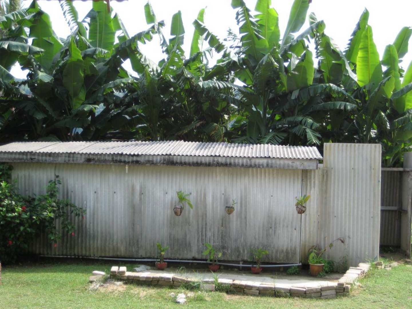 Dahinter befinden sich die Duschen und WCs