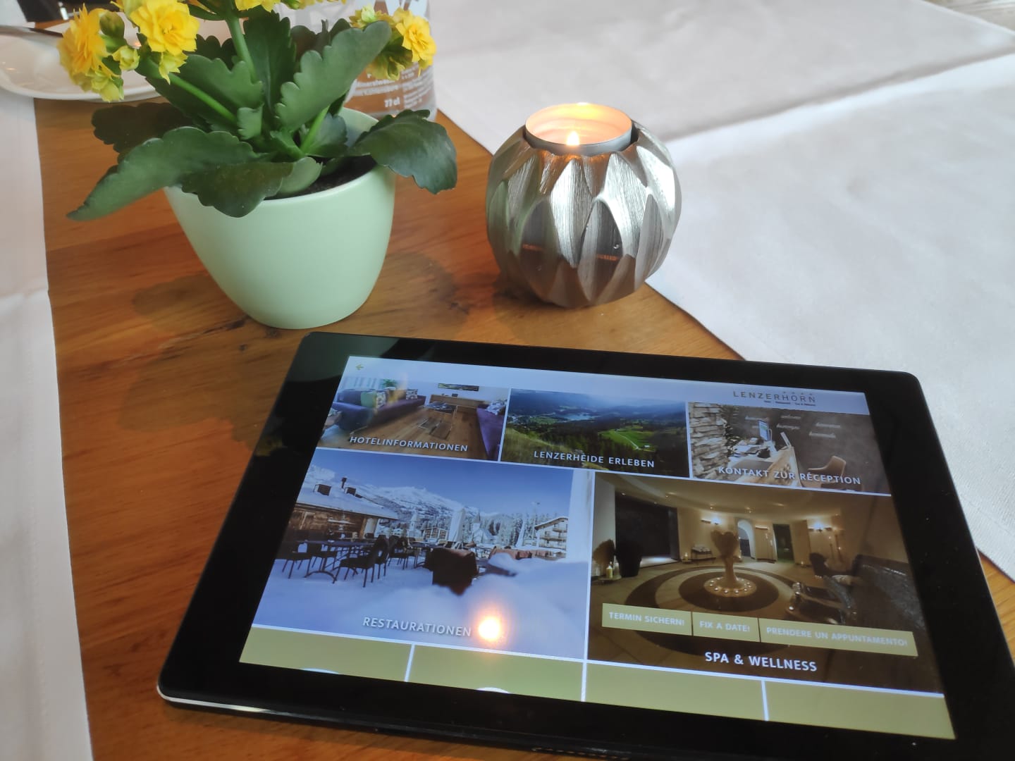 Tablett mit praktischen Funktionen auf dem Zimmer