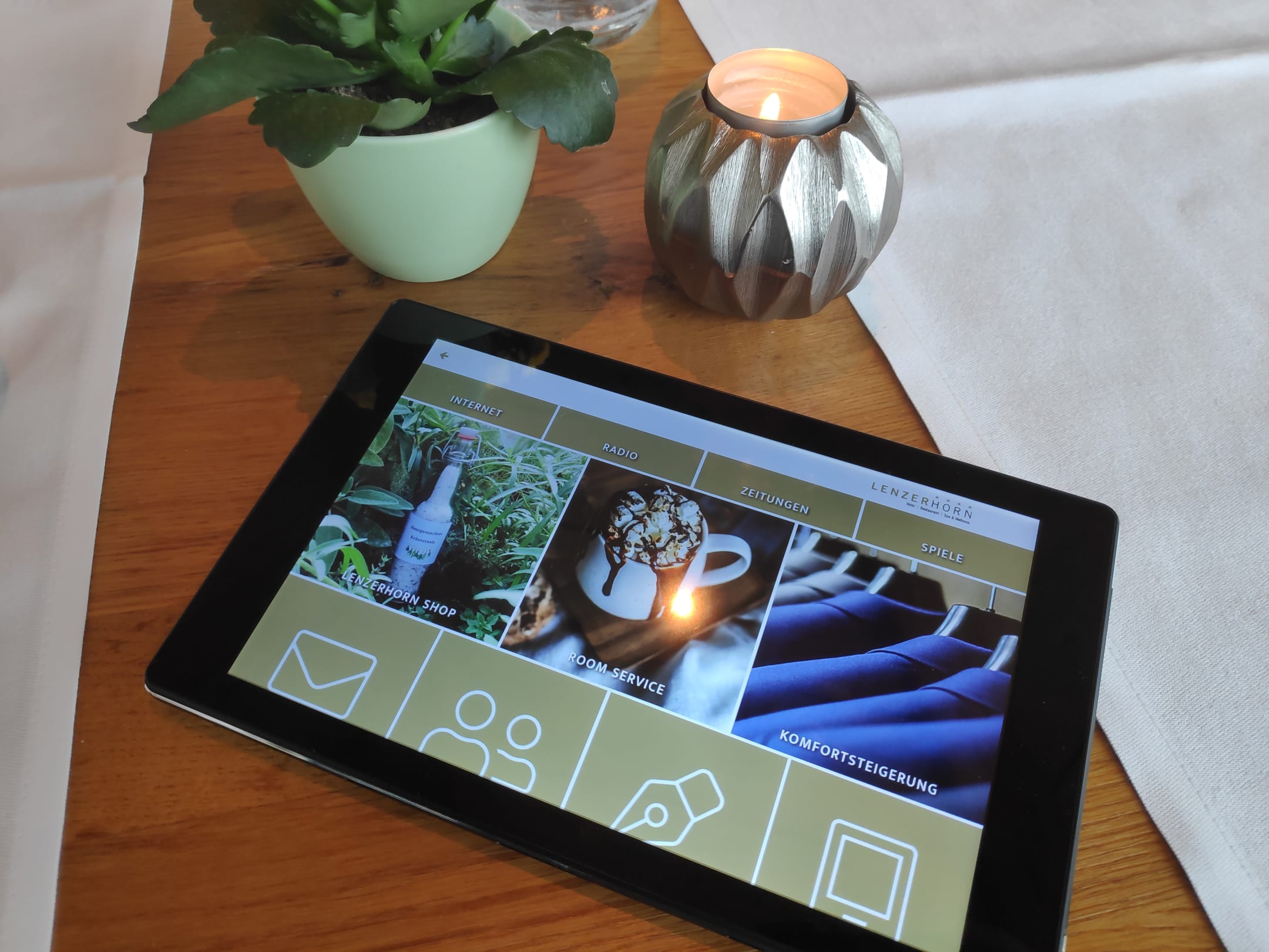 Tablett mit praktischen Funktionen auf dem Zimmer
