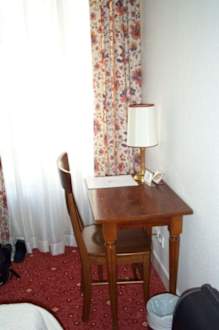 wie üblich... rustikal... und auch nicht sehr groß... aber für einen Laptop reicht es... übrigens.. WLAN sowie Fernseher mit VGA sind im Zimmer möglich !!!