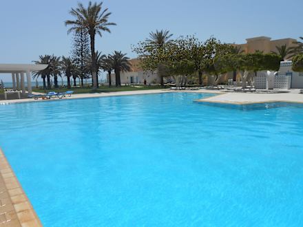 Widok basenu i ogrodu