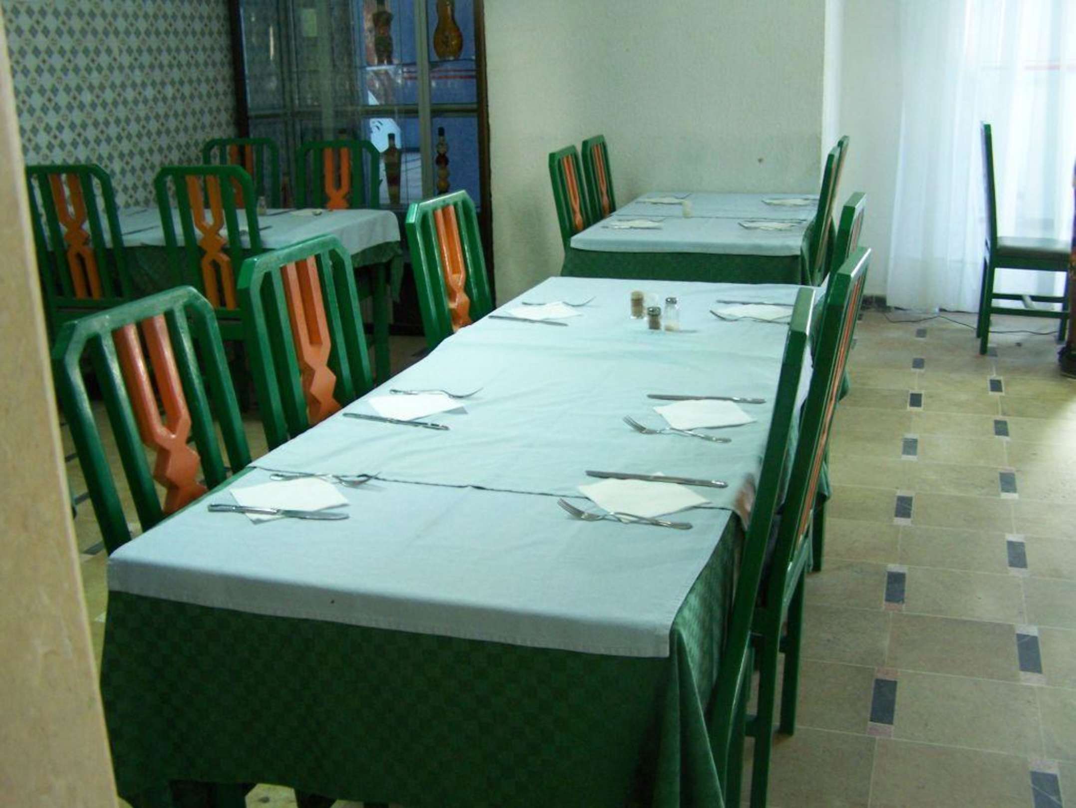 Stolik dla vipówW dziesiątym dniu pobytu grupa gości z OAZISA przeprowadziła "rozmowę" z menadżerem hotelu. Po rozmowie menadżer zaproponował on grupie gratisowe lunchy do końca turnusu, bezpłatne zabiegi SPA oraz dowolne wycieczki w cenie do 50 dinarów od osoby. Warunkiem tego było wycofanie zbiorowej skargi na hotel. Na dowód dobrej woli dyrekcji hotelu - goście i rezydent zobaczyli przez szybę (restauracja była jeszcze zamknieta) stolik przygotowany na obiado-kolację. Wprost zapierało dech. Po prawej stronie od stolika widać krzesełko kontrolera osób wchodzących na stołówkę. Dalszych stolików nie było widać przez szybę z holu hotelowego.