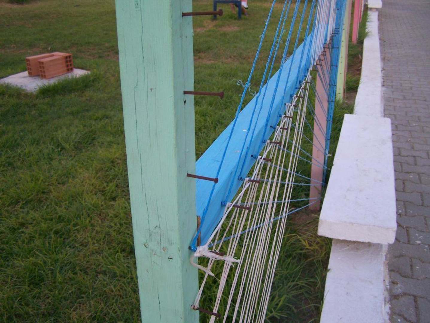 Gwoździana palisada przy placu zabaw dla dzieci w powiększeniu. A mówiono w szkole, że to Sienkiewicz wymyślił nabijanie na pal. Jest to sport i rekreacja, jak głosi nazwa tego działu.