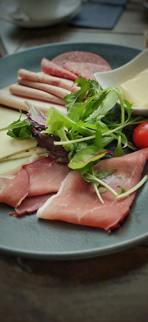 Frühstücksteller mit Wurst und Käse
