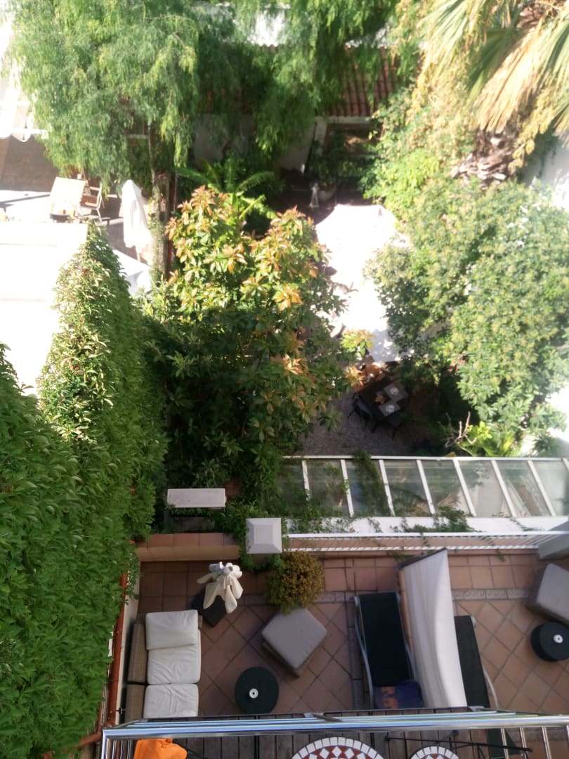 Ausblick vom Balkon zum innenhof.