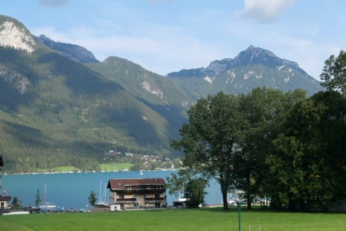 Blick vom Balkon zum Achensee und Rofangebirge